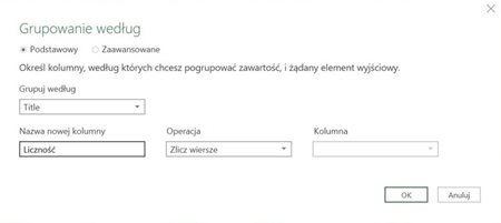 Ciekawą opcją jest możliwość liczenia na tym etapie agregatów danych „Grupuj według”