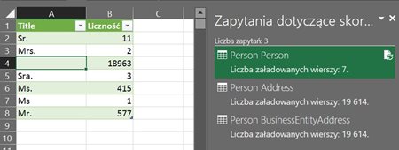 Na pierwszy rzut oka nie jest nic nadzwyczajnego, ot wczytanie danych. Widać, że te dane stały tabelą w programie i mogę wykonać na niej znane już nam operacje (zakładka Projektowanie). Prawdziwa moc pojawie się w momencie przejścia na zakładką Zapytanie: