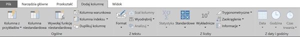 . Należy pamiętać, że działamy na całych kolumnach (tak jak w Power Pivot) a nie na pojedynczych komórkach.