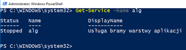 Jak widać, wprowadzenie parametru -Name do polecenia Get-Service zmodyfikowało jego działanie i pobrany został tylko serwis alg. Nie zawsze konieczne jest podawanie nazwy parametru, czasem wystarczy jego wartość. Którego parametru dotyczy wartość jest określone przez kolejność na liście.