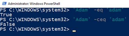 W tym przypadku posłużyłem się tylko nazwa usługi nie definiując nazwy parametru. Przy okazji proszę zwrócić uwagę, że w powyższych przykładach nazwa serwisu raz jest pisana małymi, a raz dużymi literami? Od tego jak ta wartość została napisana w poleceniu, zależy w jaki sposób zostanie wyświetlona. PowerShell nie jest językiem czułym na wielkość liter. Chociaż… Istnieją sytuacje, w których wielkość liter ma znaczenie. Na przykład operator -eq który nie uwzględnia wielkości liter oraz -ceq który bierze to pod uwagę.