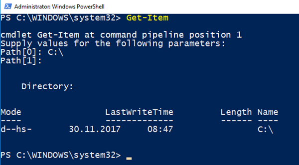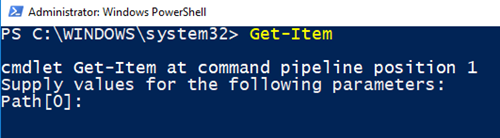 Czasem jednak parametry są obowiązkowe. Spróbujmy jak zadziała polecenie Get-Item